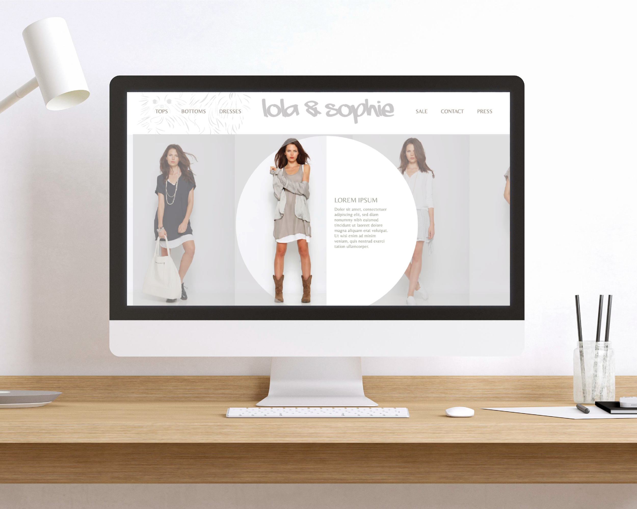 Lola & Sophie was a company that sold a line of women’s clothing. Their focus was to create timeless wardrobe staples and statement pieces. I used their clothing line for inspiration and consistency when designing a mock website homepage.